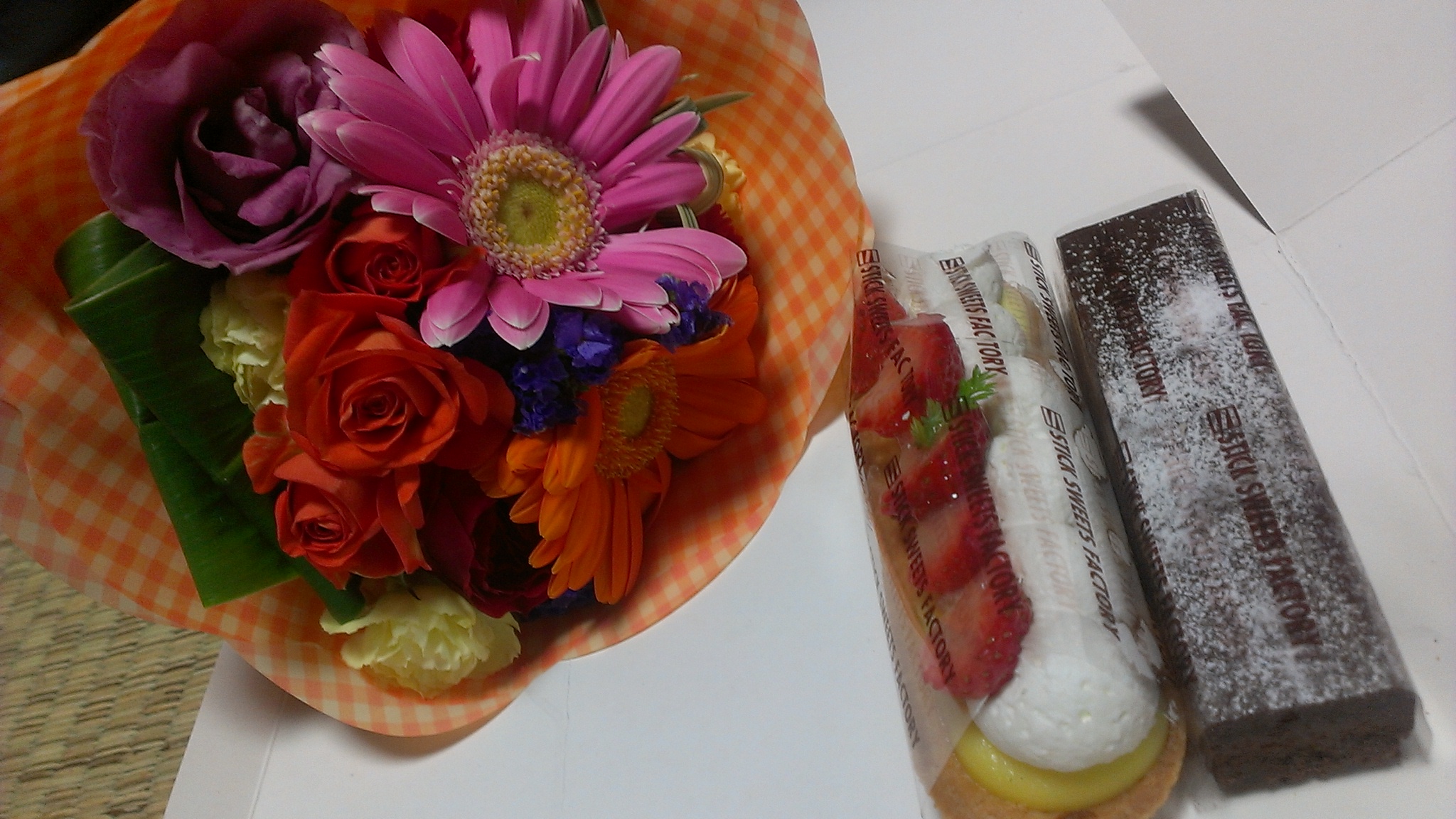 で、最後に挨拶をして花をもらってお店の前で長々と話して帰ってきました。