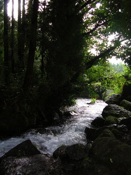 早朝散歩にて。水で遊ぶ二人が印象的でした。